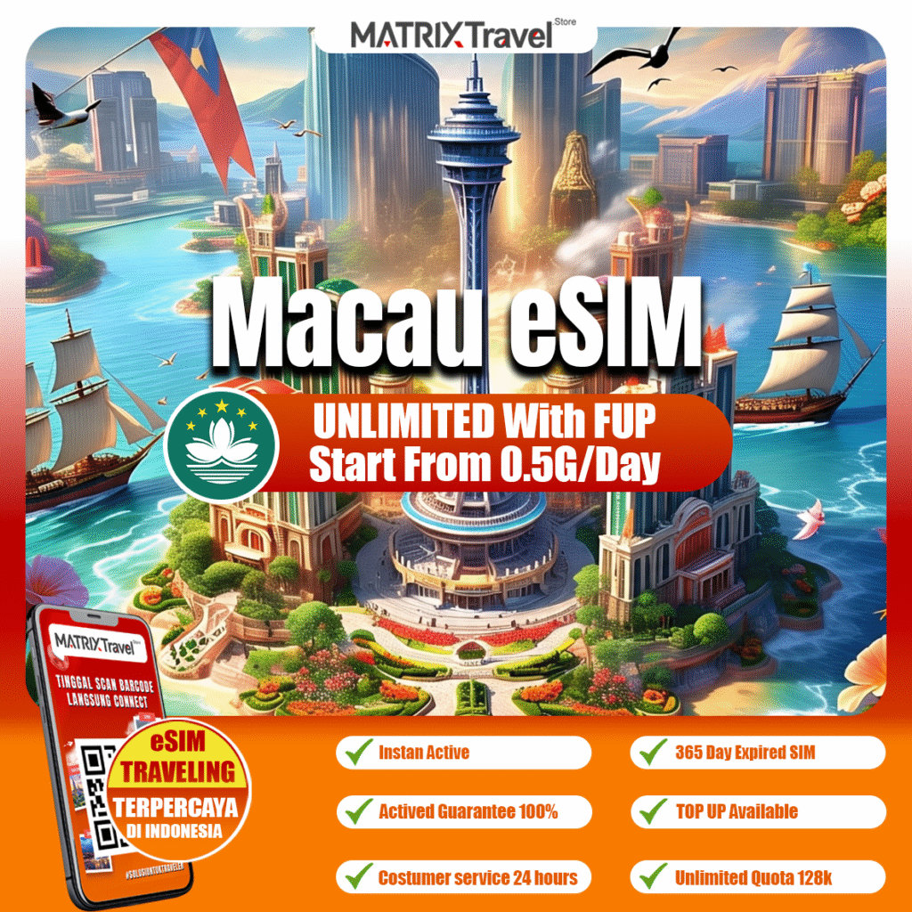 Macau eSIM Murah – Internet 4G LTE, Tanpa Roaming, Digital, Instan, Cocok Liburan & Bisnis