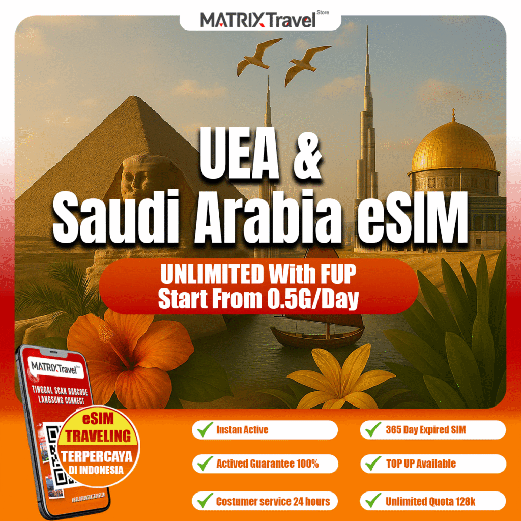 UAE, Saudi Arabia eSIM Murah – Internet 4G LTE, Tanpa Roaming, Digital, Instan, Cocok Liburan & Bisnis