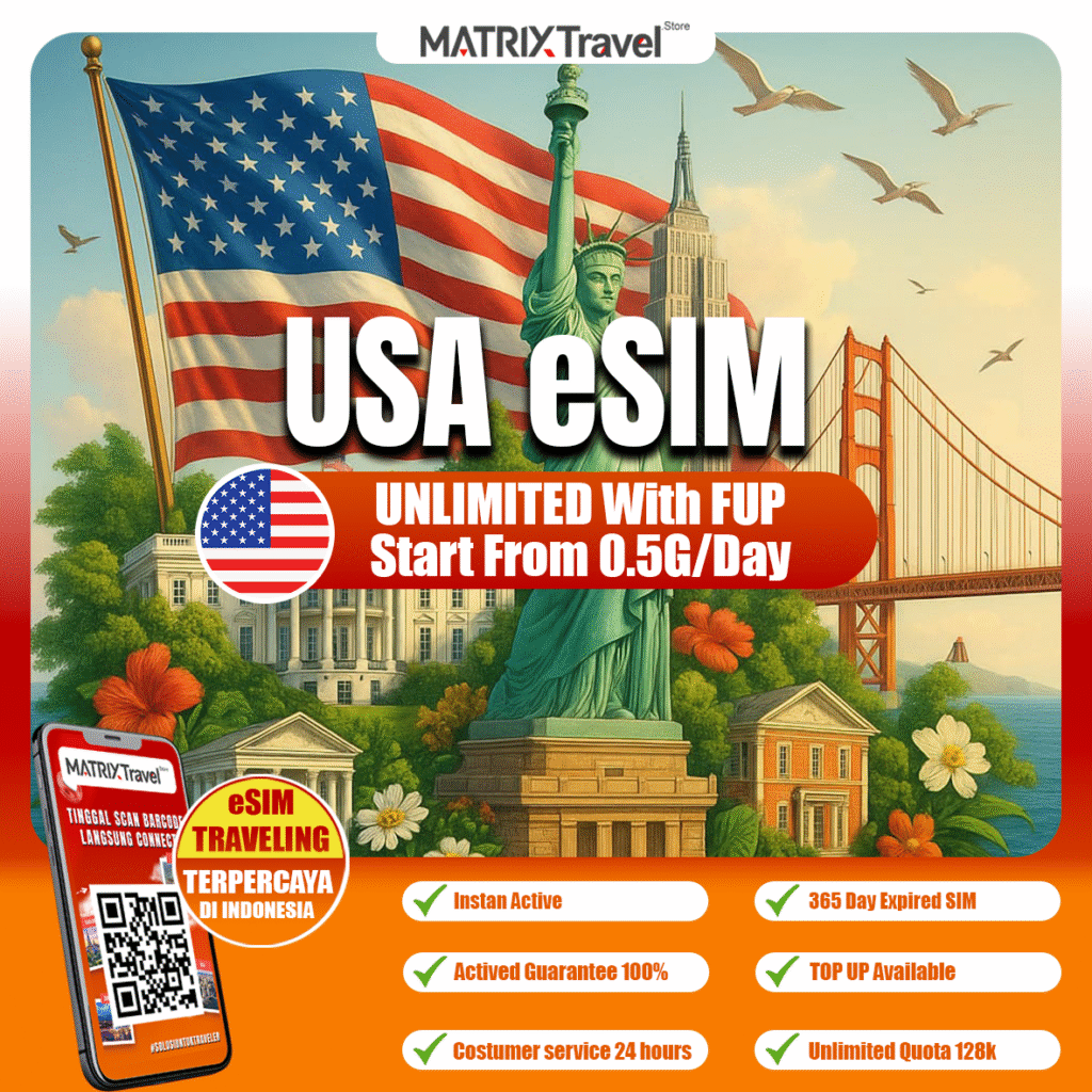 USA eSIM Murah – Internet 4G LTE with FUP, Tanpa Roaming, Digital, Instant, Cocok Liburan & Bisnis